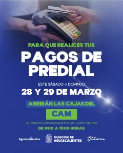 Habilita CAM servicio este sábado 28 y domingo 29 de Marzo para pago de predial