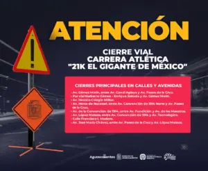 Cierres viales por la carrera atlética “21k el Gigante de México”