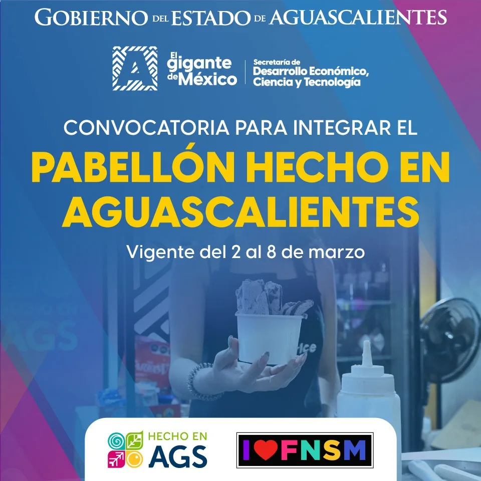 El Gobierno del Estado de Aguascalientes, a través de la Secretaría de Desarrollo Económico, Ciencia y Tecnología de Aguascalientes (Sedecyt), lanzó la convocatoria para que micro, pequeñas y medianas empresas con el distintivo vigente Hecho en Aguascalientes participen en el Pabellón Hecho en Aguascalientes durante la Feria Nacional de San Marcos 2026. La iniciativa busca impulsar la proyección comercial de negocios locales en uno de los foros más relevantes del país.