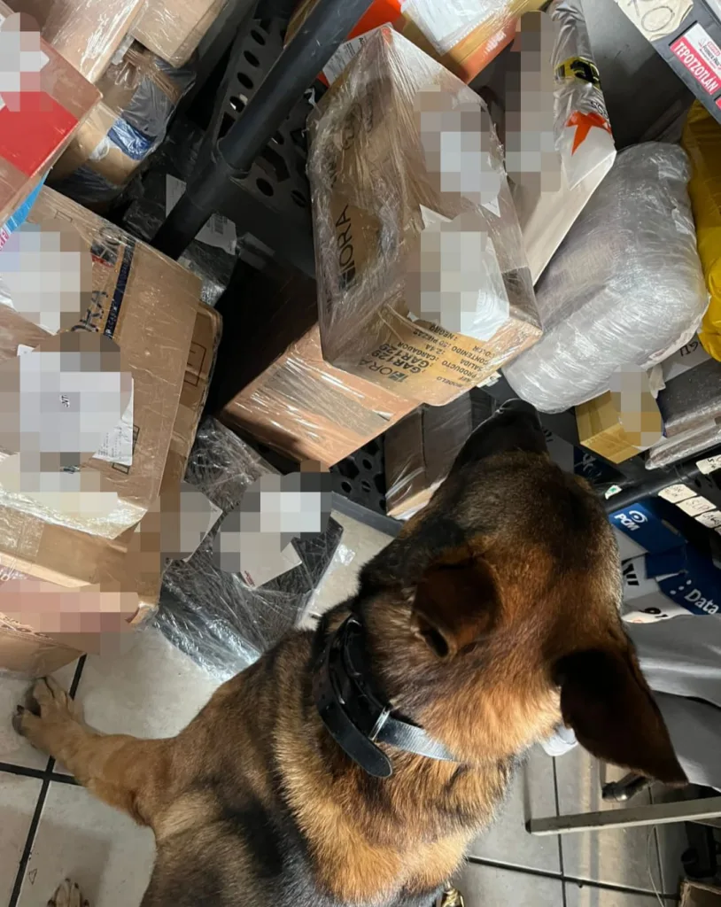 Los hechos ocurrieron al interior de la Central Camionera, donde uniformados de la Policía Estatal llevaron a cabo una inspección en una empresa de envíos. Como parte del operativo, se realizó un rastreo con el binomio canino “Nico III”, quien olfateó diversos paquetes almacenados en el lugar en busca de posibles sustancias ilícitas.
