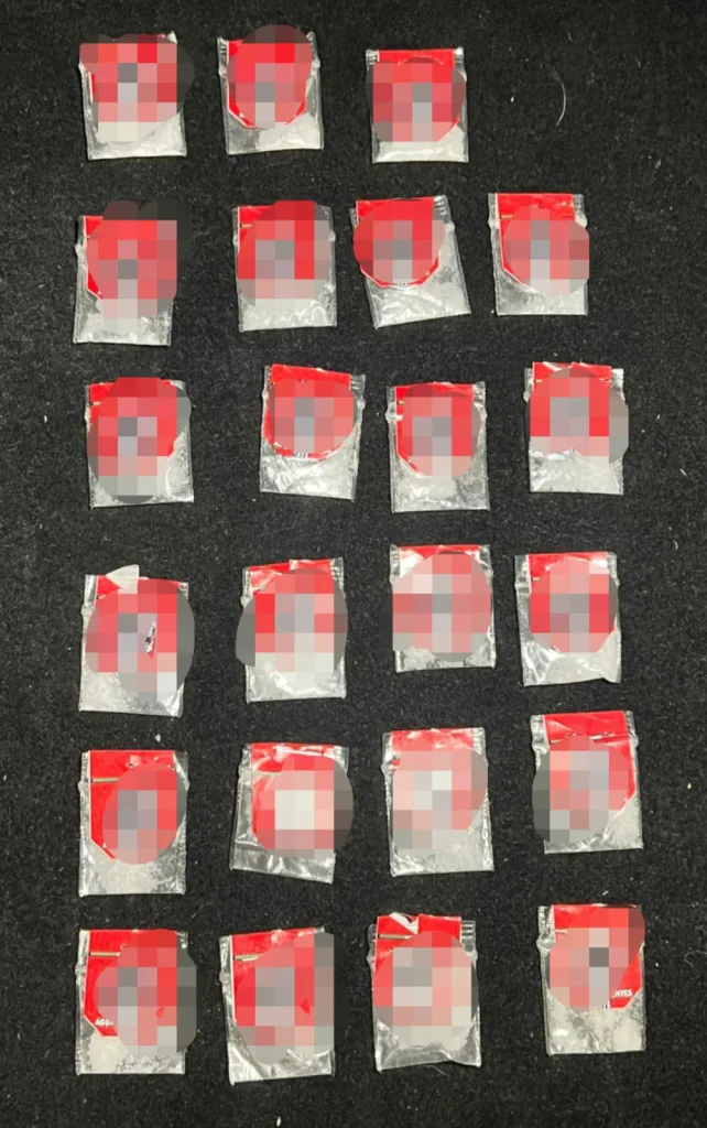 El sujeto dijo responder al nombre de David, de 24 años de edad, durante la revisión a la que fue sometido le detectaron entre sus pertenencias 23 envoltorios que contenían en su interior sustancia granulada al tacto con las características propias del cristal, que dieron un peso aproximado de 26 gramos.