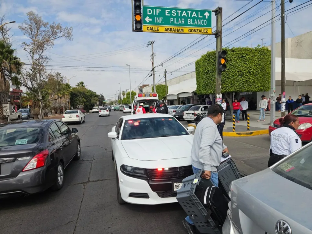 Un accidente vial entre un automovilista y un motociclista dejó como saldo una persona lesionada, quien tuvo que ser trasladada de emergencia para recibir atención médica especializada. El percance se registró en el cruce de la avenida Mahatma Gandhi y la calle Abraham González, en la colonia Prados de Villasunción, donde se movilizaron de inmediato los cuerpos de seguridad y auxilio.