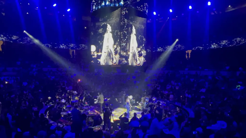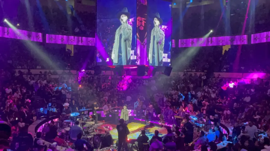 El sonorense apareció en el redondel entre ovaciones y celulares en alto, desatando la euforia con temas que ya son himnos contemporáneos del regional mexicano. Canciones como “Primera Cita”, “Según Quién”, “La Boda del Huitlacoche”, “Que Vuelvas” y “No Es Por Acá” fueron coreadas de principio a fin, en una comunión que hizo vibrar cada rincón del recinto. La energía no decayó en ningún momento; al contrario, fue creciendo conforme avanzaba la noche, con brindis, aplausos y ese ambiente festivo tan característico del Palenque.