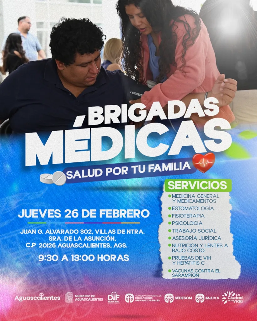 El DIF Municipal de Aguascalientes invita a la ciudadanía a participar en las próximas Brigadas Médicas, donde se ofrecerán servicios gratuitos de salud para toda la familia, incluyendo la aplicación sin costo de vacunas contra el sarampión en la jornada del jueves 26 de febrero. Estas acciones buscan fortalecer la prevención de enfermedades y acercar atención médica integral a la población, especialmente a quienes más lo necesitan.