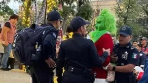 Agentes de la Policía Municipal llegaron al lugar para detener al Grinch y restablecer el orden. Ambos involucrados fueron trasladados a las autoridades correspondientes, aunque ninguno resultó con lesiones graves.