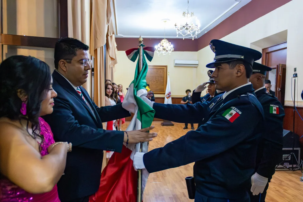 El momento culminante de la noche llegó a las 22:45 horas, cuando el alcalde César Medina, portando la Bandera Nacional, salió al balcón de la Presidencia Municipal. Ante la multitud, dio el Grito de Independencia, una arenga que resonó con fervor patriótico y encendió los corazones de los asistentes. El ondeó del lábaro patrio, acompañado de un impresionante espectáculo de juegos pirotécnicos, llenó de emoción a los presentes, quienes respondieron con entusiasmo a cada “¡Viva!”. Este acto solemne, que honra a los héroes de la libertad, demostró el arraigo y la importancia de esta fecha histórica para la comunidad.