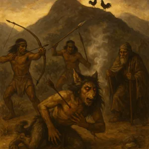 El combate fue feroz. El nahual cambió de forma varias veces: primero coyote, luego un águila negra, y por último, un anciano envuelto en humo espeso. Pero los guerreros, guiados por el chamán del clan, lo rodearon y lo hirieron con flechas untadas en savia de tule, planta que, según la tradición, rompe los encantamientos. El nahual, herido de muerte, lanzó un grito tan agudo que los gallos del valle comenzaron a cantar, aunque no fuera su hora.Desde entonces, al cerro se le conoce como el Cerro de los Gallos, porque cada madrugada, dicen, los descendientes del nahual despiertan con el canto de esas aves, recordando que uno de los suyos cayó allí. Y cuando la niebla baja y el viento sopla desde el norte, algunos aseguran ver una sombra de coyote en la cima, acechando… como si aún esperara su momento.