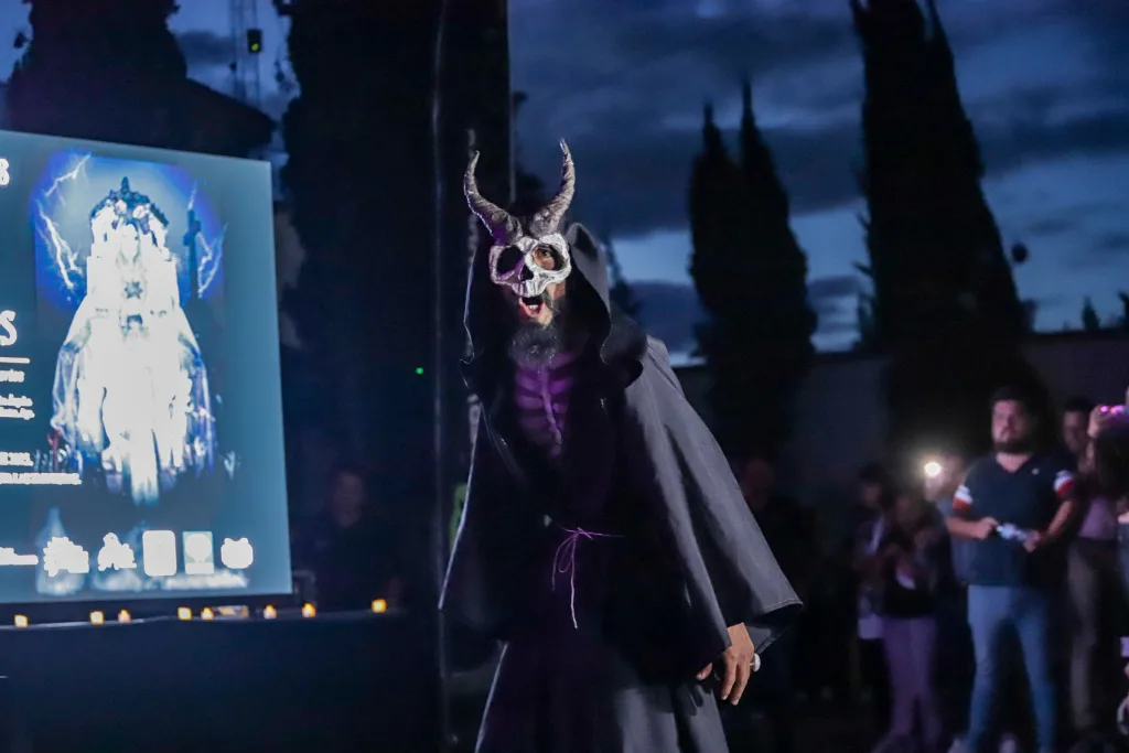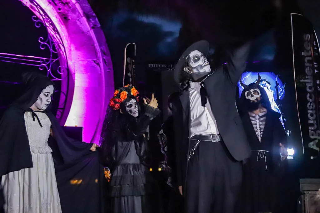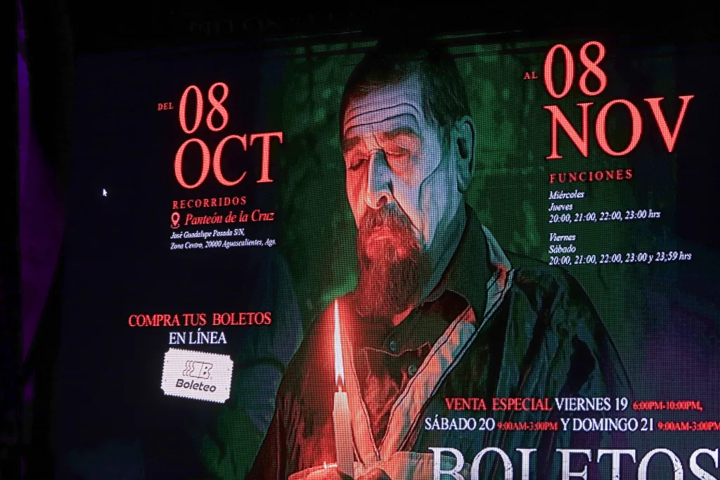 El espectáculo contará con 110 funciones que se realizarán del 8 de octubre al 8 de noviembre, con un aforo máximo de 100 personas por función para garantizar una experiencia íntima y segura. Los horarios han sido pensados para abarcar las noches de la ciudad: los miércoles y jueves habrá funciones a las 20:00, 21:00, 22:00 y 23:00 horas, mientras que los viernes y sábados se extenderán hasta la medianoche con funciones a las 20:00, 21:00, 22:00, 23:00 y 23:59 horas. Esta amplia disponibilidad permite a más personas disfrutar de la dramaturgia de artistas hidrocálidos que prometen envolver al público en una atmósfera de solemnidad.