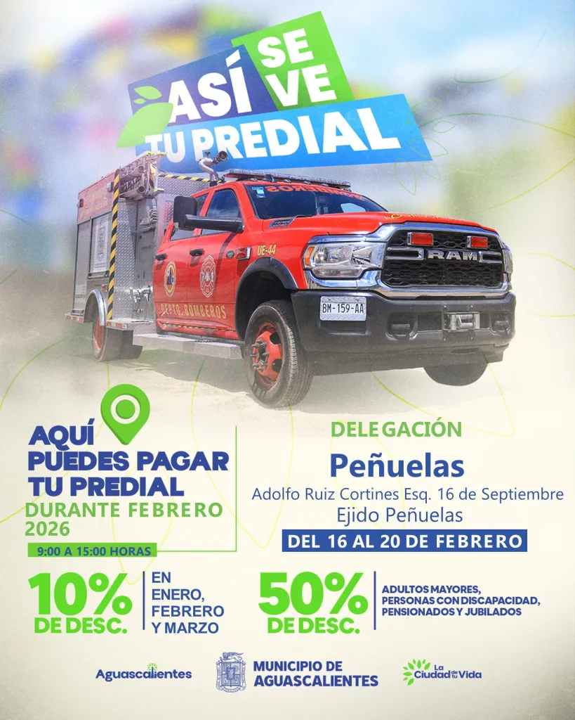 El Municipio de Aguascalientes, a través de la Secretaría de Finanzas, informó que habilitará un punto temporal para el pago del impuesto predial en la comunidad de Peñuelas, con el propósito de acercar los servicios municipales y facilitar el cumplimiento de esta contribución. La medida busca ofrecer alternativas más accesibles a la ciudadanía que reside en esta zona.