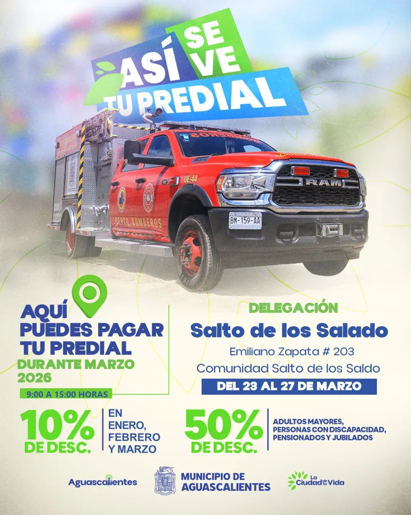 El presidente municipal de Aguascalientes, Leo Montañez, reiteró la invitación a la ciudadanía para aprovechar los últimos días de descuentos en el pago del impuesto predial, al tiempo que anunció la instalación de un módulo temporal en la delegación Salto de los Salado. Esta medida busca facilitar el acceso al trámite y acercar los servicios municipales a las y los contribuyentes.