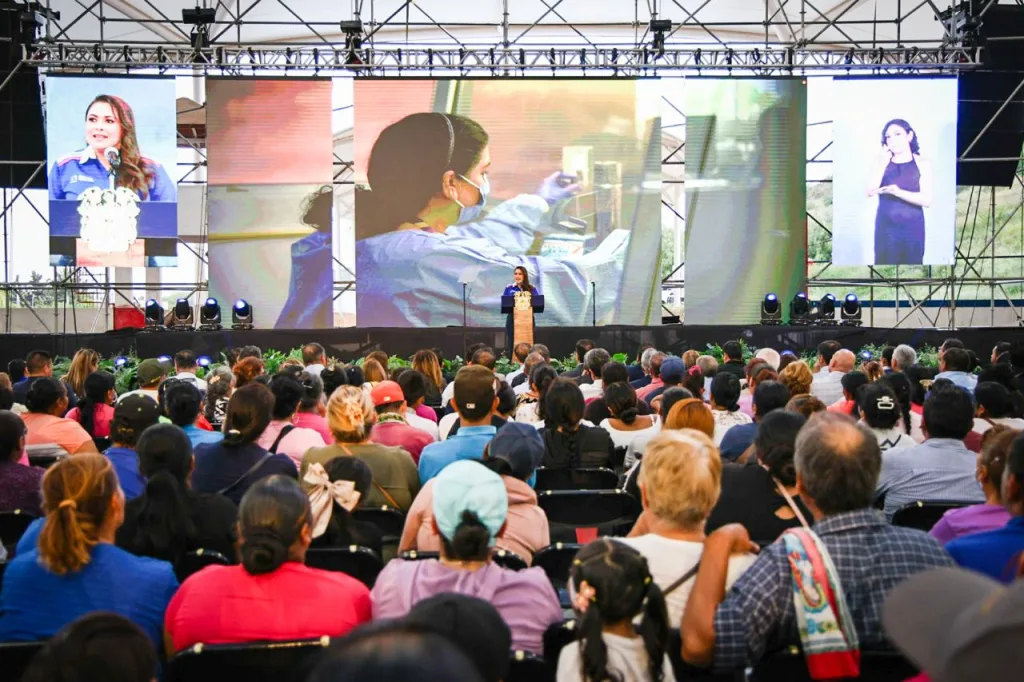 Finalmente, la inversión en infraestructura, vivienda y apoyo al campo demuestra el enfoque integral de la gestión. La gobernadora informó que se están desarrollando 500 nuevas viviendas en Rincón de Romos y 139 en Cosío. En obra pública e hidráulica, se superaron las 100 obras, con una inversión superior a los 61 millones de pesos en ambos municipios, destacando la rehabilitación del libramiento y la instalación de tanques elevados de agua en Rincón de Romos, así como el mejoramiento del alcantarillado y la perforación de pozos en Cosío. En apoyo al campo, se construyeron y rehabilitaron más de mil bordos de captación de agua y se destinaron 10 millones de pesos a fondo perdido para productores de uva de Cosío. La mandataria concluyó invitando a seguir trabajando con unidad por un Aguascalientes de oportunidades y progreso.