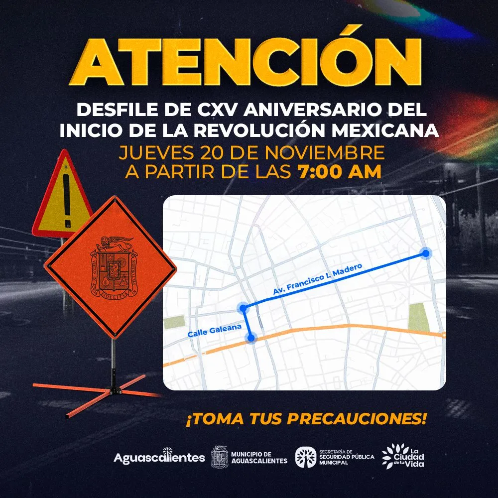 Anuncian cierres viales por el desfile del 20 de noviembre; autoridades recomiendan rutas alternas y planear traslados para evitar congestionamientos.