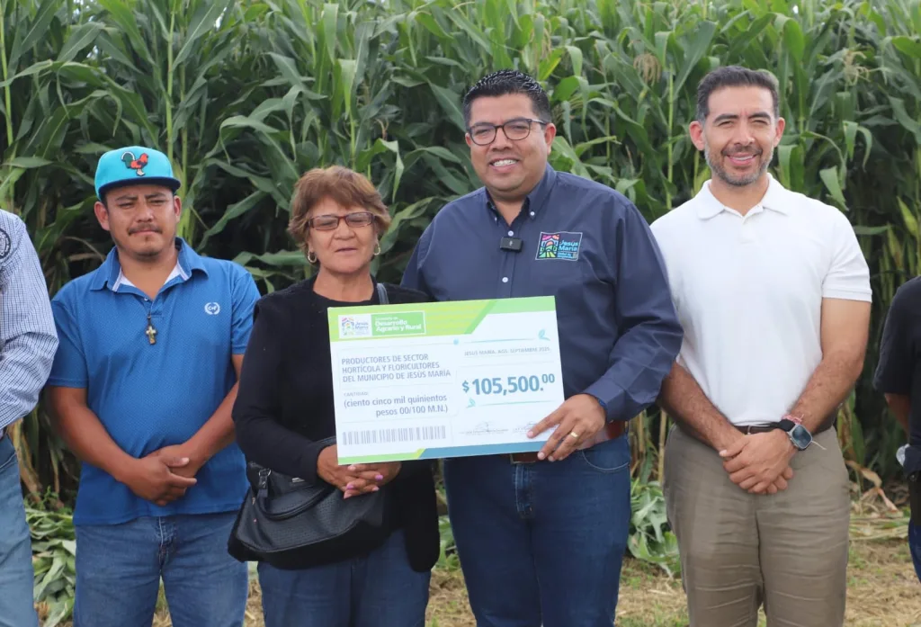 Jesús María entregó apoyos a 63 productores agrícolas y ganaderos, una inversión de más de 260,500 pesos para mejorar la producción local.