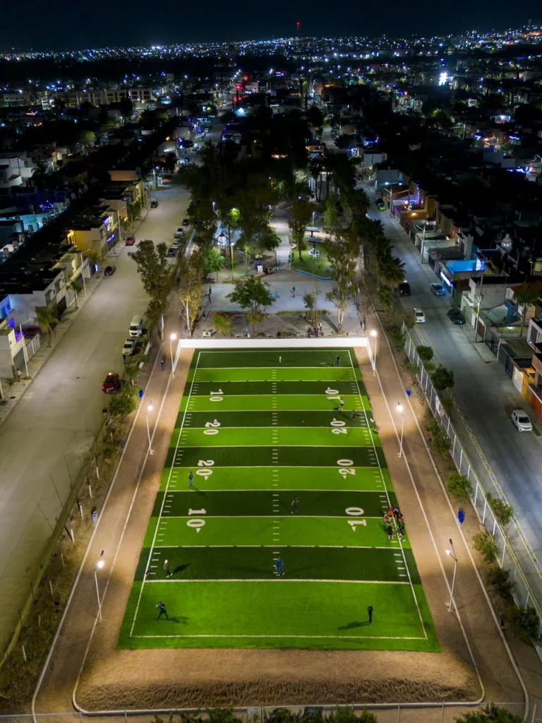 Entrega Leo Montañez cancha de tochito bandera en el parque vistas del sol