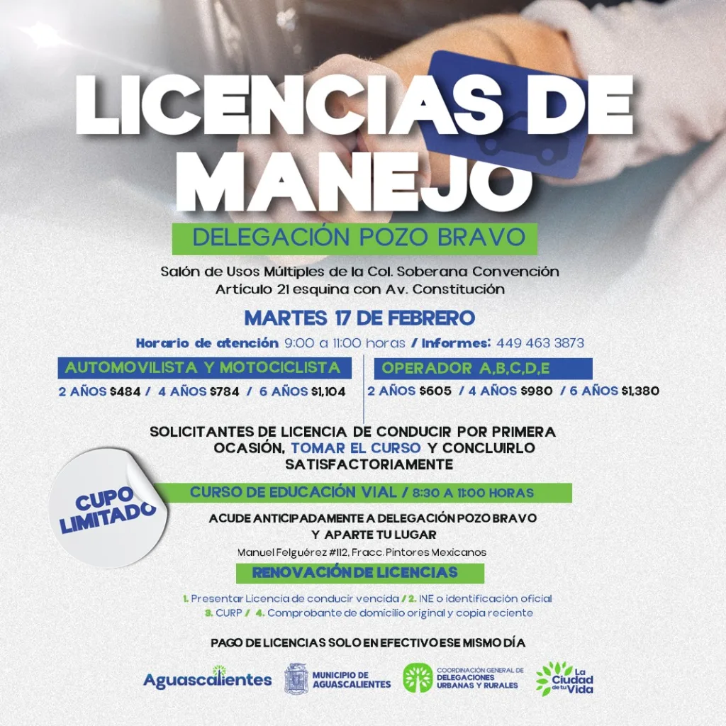 Realizarán jornada de renovación de licencias en Aguascalientes con curso vial y atención abierta a toda la ciudadanía.