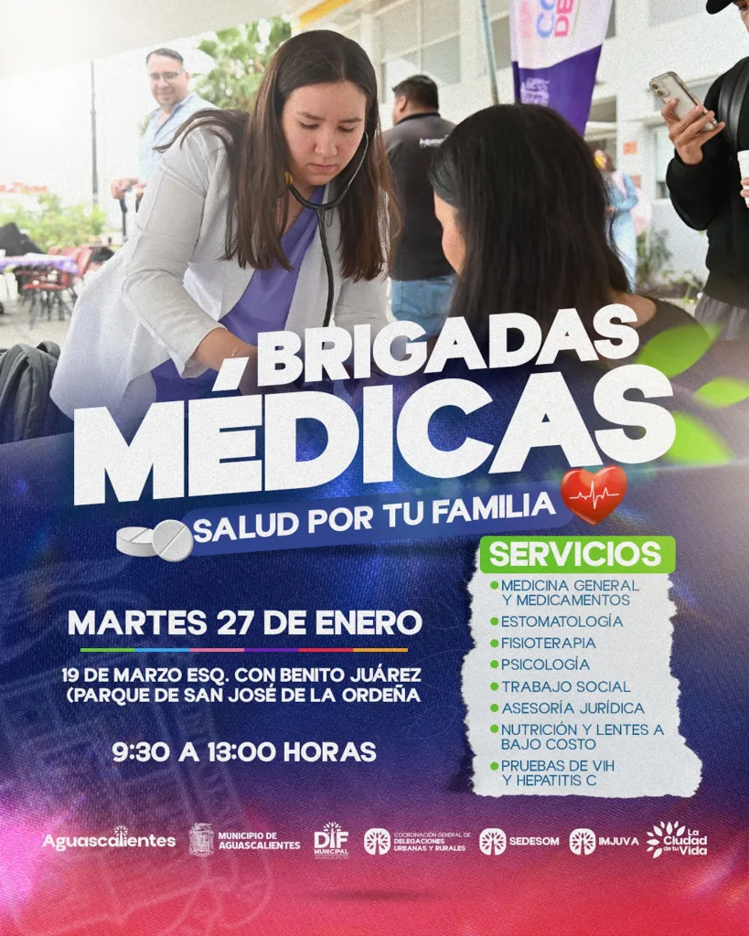 DIF Municipal realizará brigadas médicas gratuitas en Aguascalientes para ofrecer atención integral y servicios de salud a las familias.