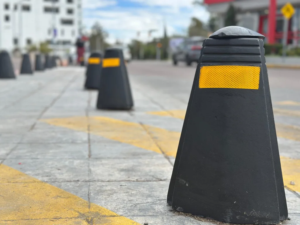 Municipio de Aguascalientes rehabilita y repone bolardos para fortalecer seguridad vial, proteger peatones y mejorar movilidad urbana.