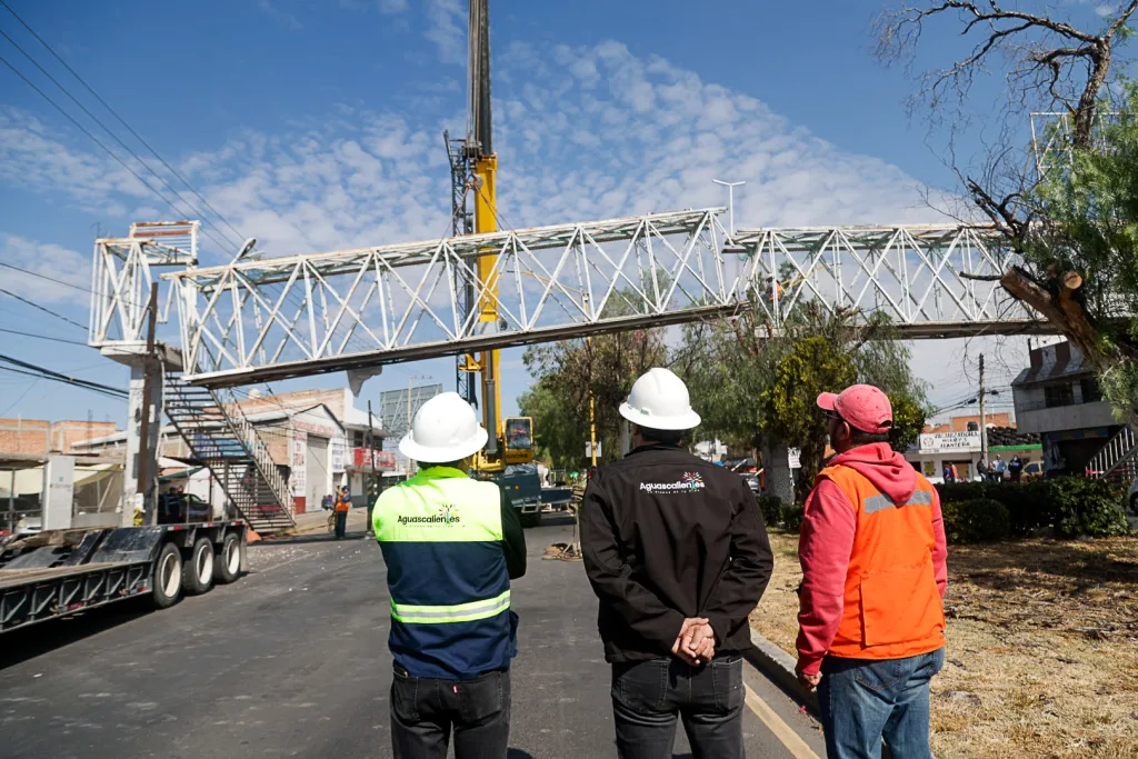 Supervisan desmontaje de puentes peatonales en Avenida Aguascalientes poniente para mejorar accesibilidad, seguridad vial y movilidad incluyente en la ciudad.