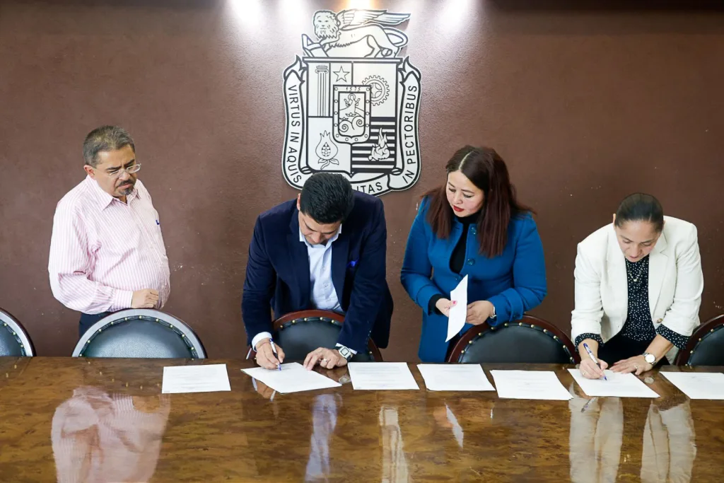 Leo Montañez encabezó firma de escrituras para regularizar espacios educativos y áreas urbanas, fortaleciendo desarrollo ordenado de Aguascalientes.