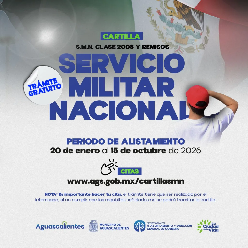 El Municipio de Aguascalientes abre el periodo de alistamiento para la Cartilla Militar 2026 con cita y requisitos obligatorios.