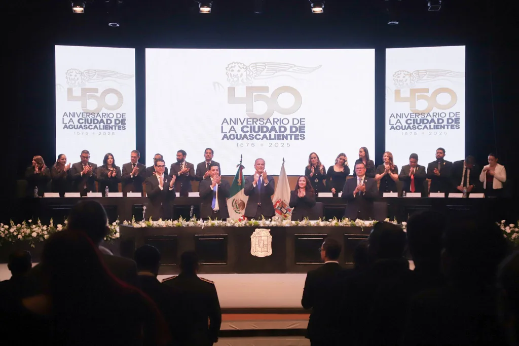 Aguascalientes celebró su 450 aniversario con Sesión Solemne, reconocimientos a ciudadanos distinguidos y un llamado a la unidad y orgullo local. Aguascalientes celebra 450 años de grandeza y unidad en Sesión Solemne En el marco del 450 Aniversario de la Fundación de la Ciudad de Aguascalientes, el presidente municipal Leo Montañez encabezó la Sesión Solemne […]