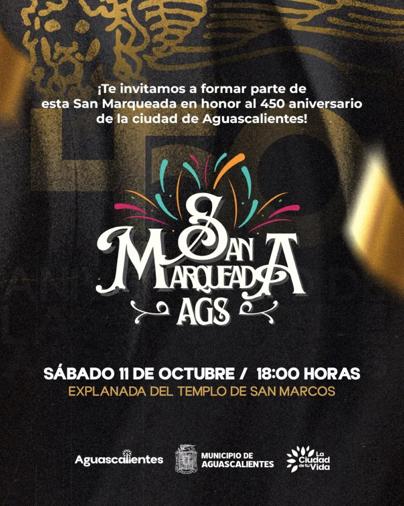 Invita Municipio de Aguascalientes a celebrar el 450 aniversario de la ciudad con una san marqueada
