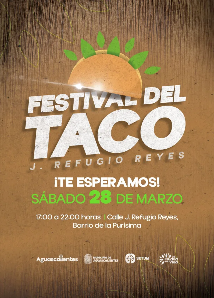 El Municipio de Aguascalientes, a través de la Secretaría de Economía Social y Turismo Municipal (SETUM), anunció la realización del Tercer Festival del Taco el próximo 28 de marzo en la calle J. Refugio Reyes, en el tradicional barrio de La Purísima. Este evento busca resaltar la riqueza de la gastronomía local, al tiempo que impulsa la actividad económica y turística en esta emblemática zona de la ciudad.