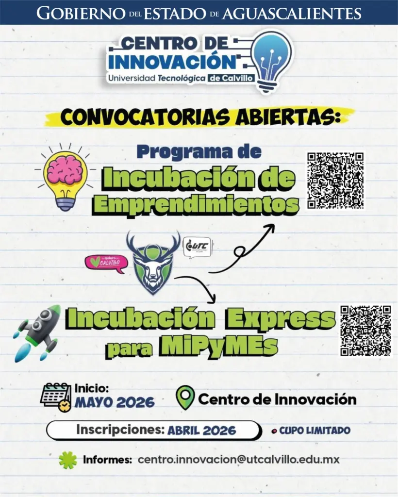 Con esta iniciativa, la UTC se posiciona como un actor clave en el desarrollo económico de Calvillo, Aguascalientes y el sur de Zacatecas, al fomentar el talento, la innovación y la generación de oportunidades. Durante el arranque, se anunciaron dos programas gratuitos para 2026: Incubación de Emprendimientos, con duración de 12 semanas, dirigido a estudiantes y emprendedores; e Incubación Express, un esquema intensivo de cuatro semanas enfocado en micro, pequeñas y medianas empresas que buscan fortalecer y escalar sus proyectos.